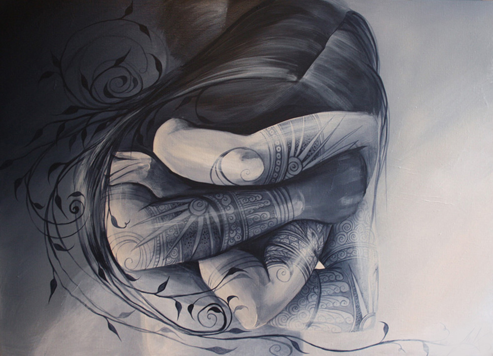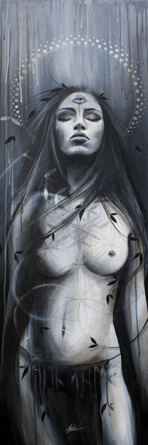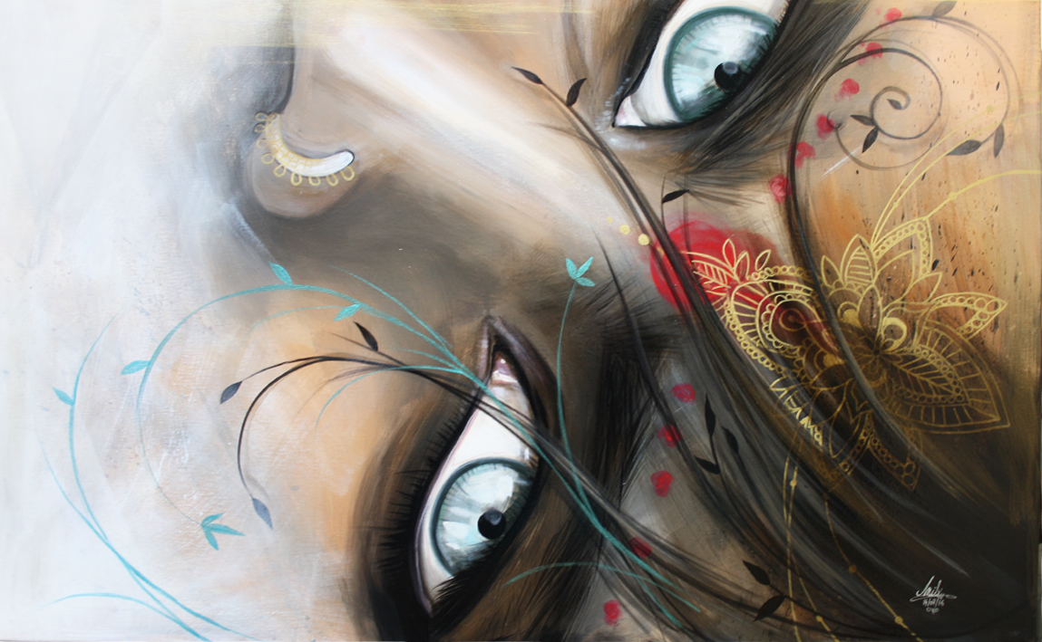peinture acrylique et feuilles d'argent